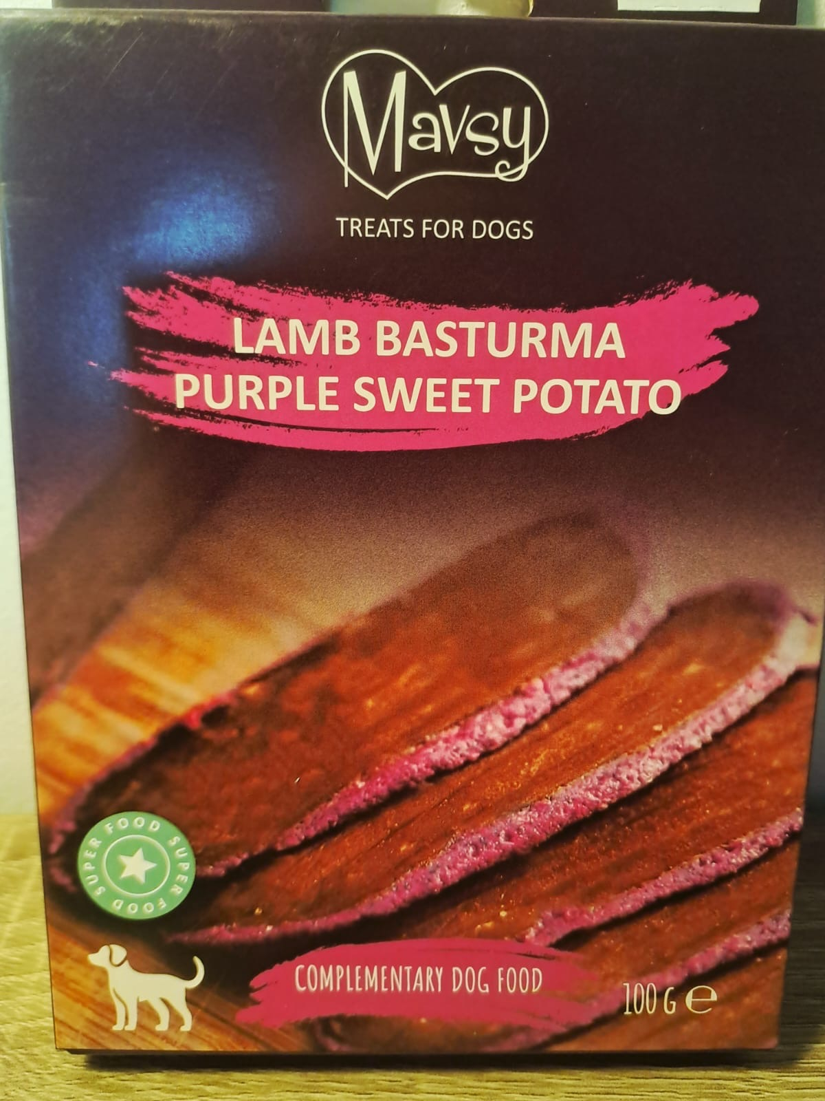 Delicii pentru câini Mavsy Refined jerky LAMB BASTURMA CU CARTOF DULCE MOV basturma de miel cu cartof dulce mov, 100 g. Delicii pentru câini de la 3 luni Mavsy LAMB BASTURMA CU CARTOF DULCE MOV — sunt bucățele gustoase de basturma de miel cu cartof dulce mov, care nu doar încântă, ci și aduc beneficii. Cartoful dulce mov este plin de vitamine și fibre, contribuind la o digestie bună și la energie. Aceste delicii sunt ușor de digerat și vor fi un adaos plăcut la dieta prietenului tău patruped.