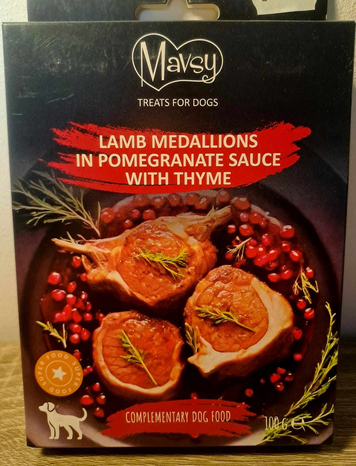 Gustări pentru câini Mavsy Refined jerky MEDALIOANE DE MIEL ÎN SOS DE RODIE CU CIMBRU, 100 g. Gustări pentru câini de la 3 luni Mavsy LAMB MEDALLIONS IN POMEGRANATE SAUCE WITH THYME oferă o combinație rafinată de medalii de miel și rață, gătite cu dragoste. Datorită sosului de rodie cu cimbru, aceste gustări nu sunt doar delicioase, ci și un adaos sănătos în dieta zilnică. Ingrediente precum chia și amidonul de cartofi furnizează energie pentru viața activă a prietenului vostru patruped, iar proteina vegetală contribuie la dezvoltarea sănătoasă. Animalul vostru de companie se va bucura de fiecare bucățică, primind nu doar plăcere, ci și nutrienții necesari.