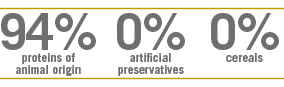 Proteine brute 33.00%; Grăsimi brute 16.50%; Fibre brute 2.10%; Umiditate 8.00%; Cenușă brută 7.90%; Calciu 1.00%; Fosfor 0.80%; Sodiu 0.30%; Potasiu 0.70%; Magneziu 0.08%; Cloruri 0.75%; Sulf 0.40%; acizi grași Omega-6 3.20%; acizi grași Omega-3 0.40%; DHA 0.15%; EPA 0.10%; Glucozamină 1200mg/kg; Condroitină 900mg/kg.