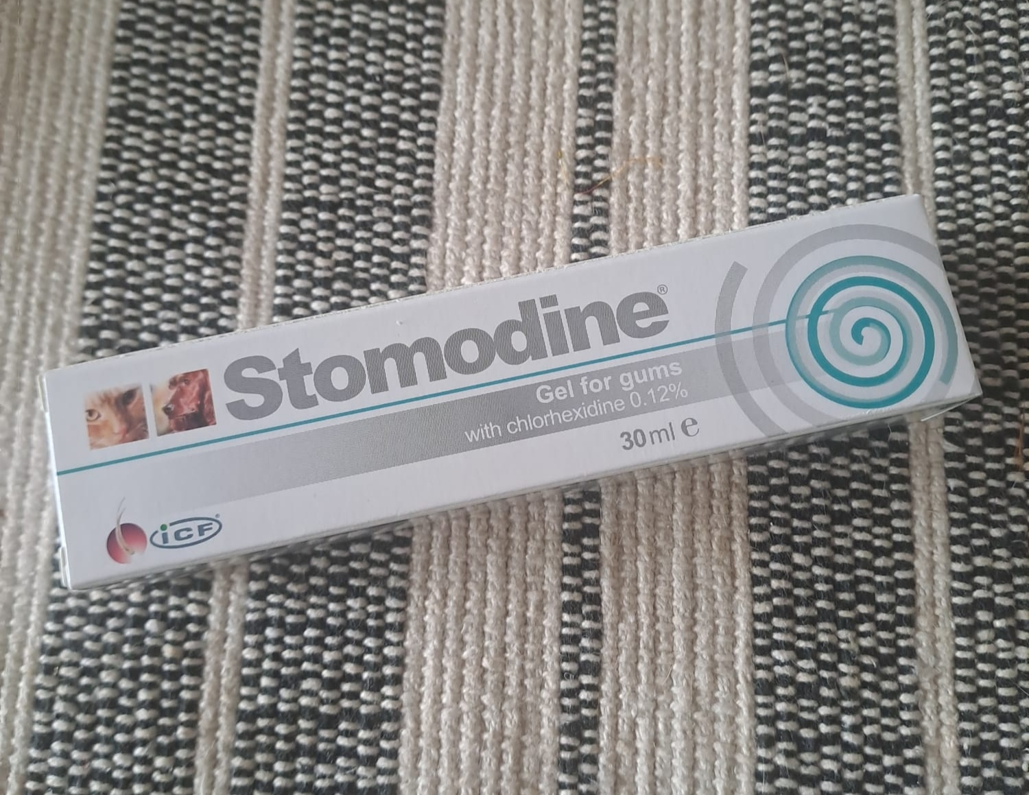 Mod de administrare: In general, se aplica o data sau de doua ori pe zi, la baza dentitiei si pe gingii, manopera urmata de un masaj delicat de scurta durata. Consistenta specifica a produsului, asigura o difuzare si o persistenta optima. Stomodine nu necesita clatire, deoarece are o toleranta locala excelenta. Frecventa si durata administrarii va fi determinata de medicul veterinar.
