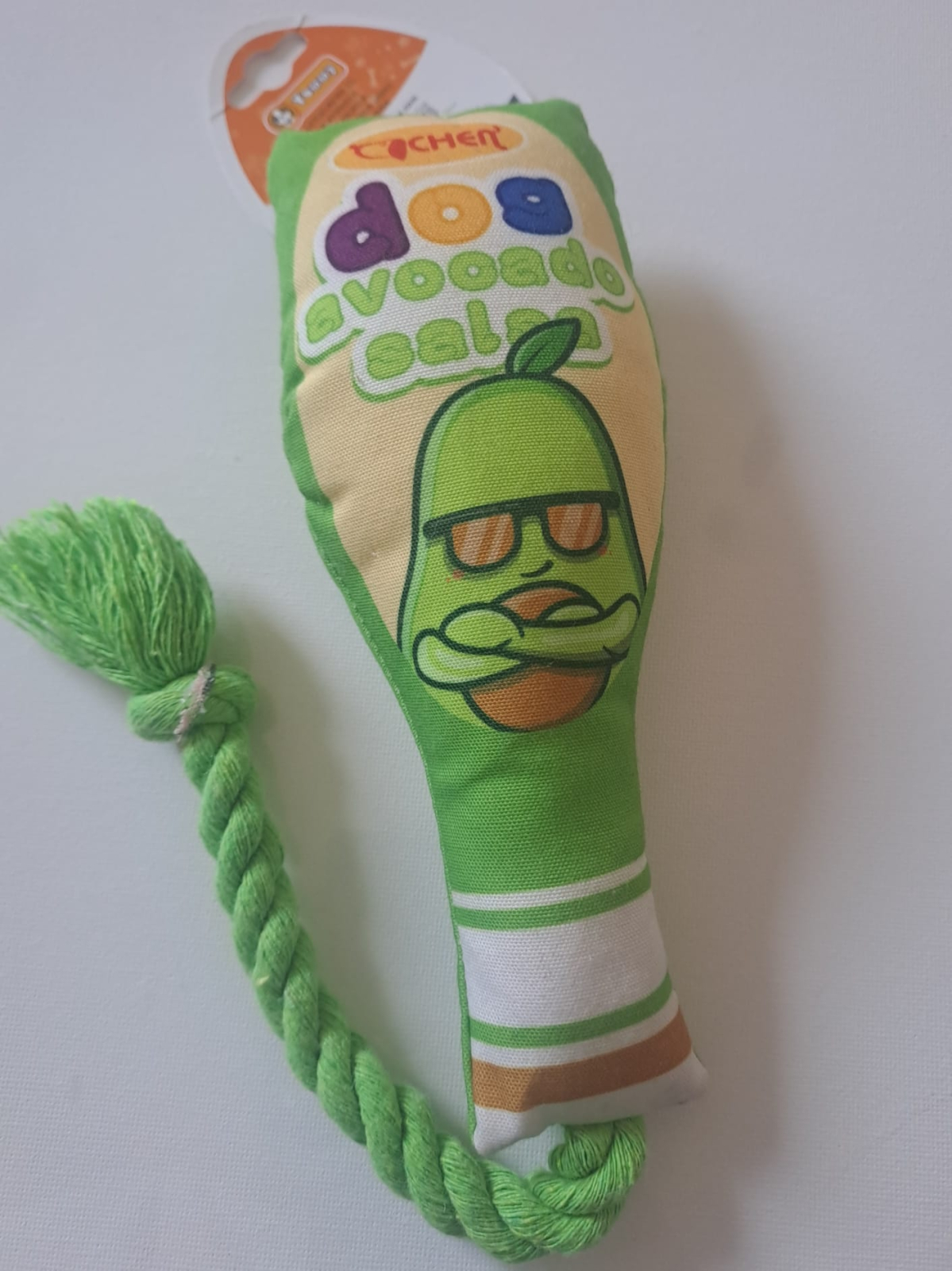 Jucărie pentru câini cu frânghie Dog Avocado. O jucărie veselă și rezistentă pentru câini activi. Partea moale din material textil în formă de fruct sau sos amuzant și frânghia din bumbac rezistent fac jocul și mai interesant.