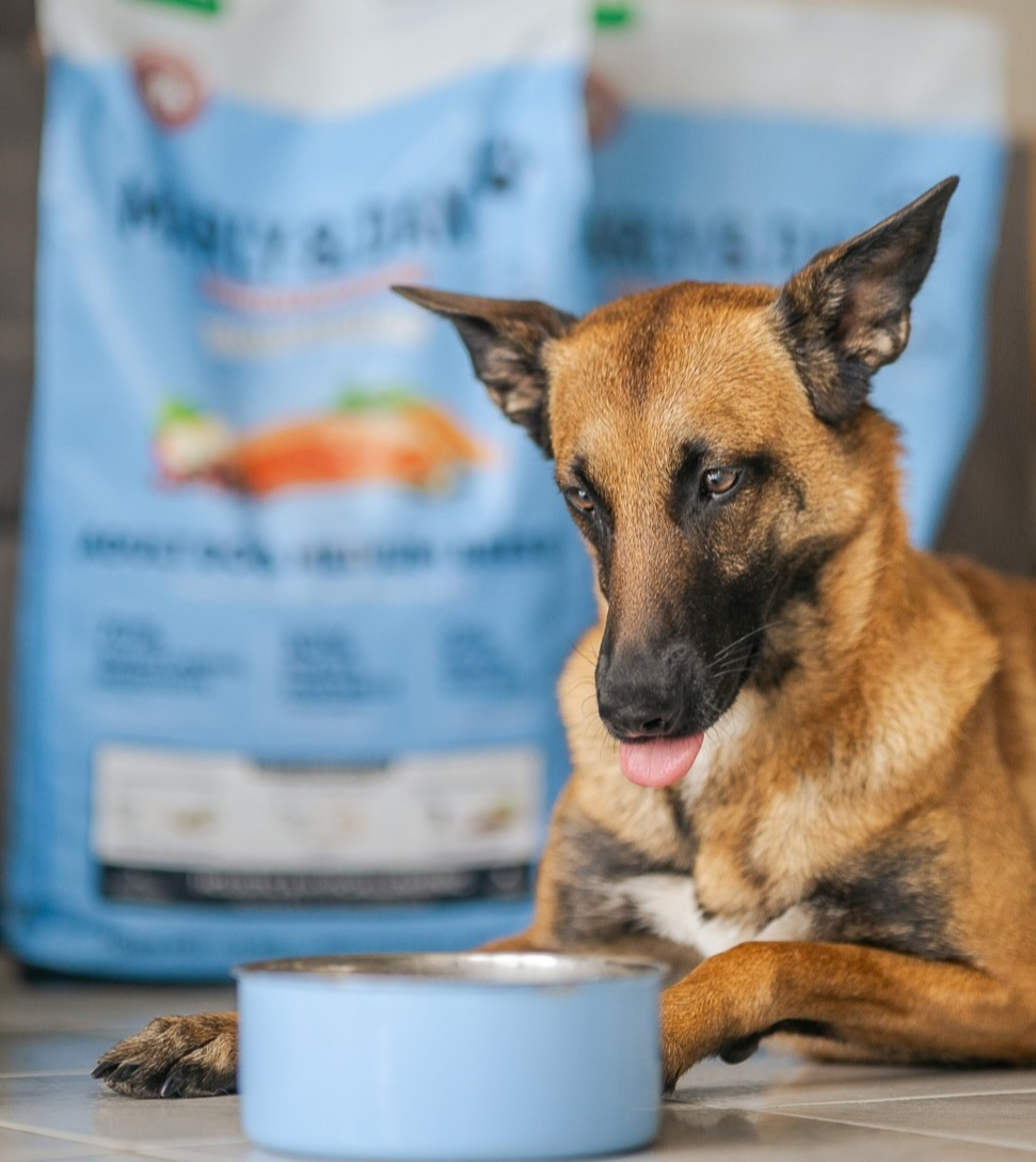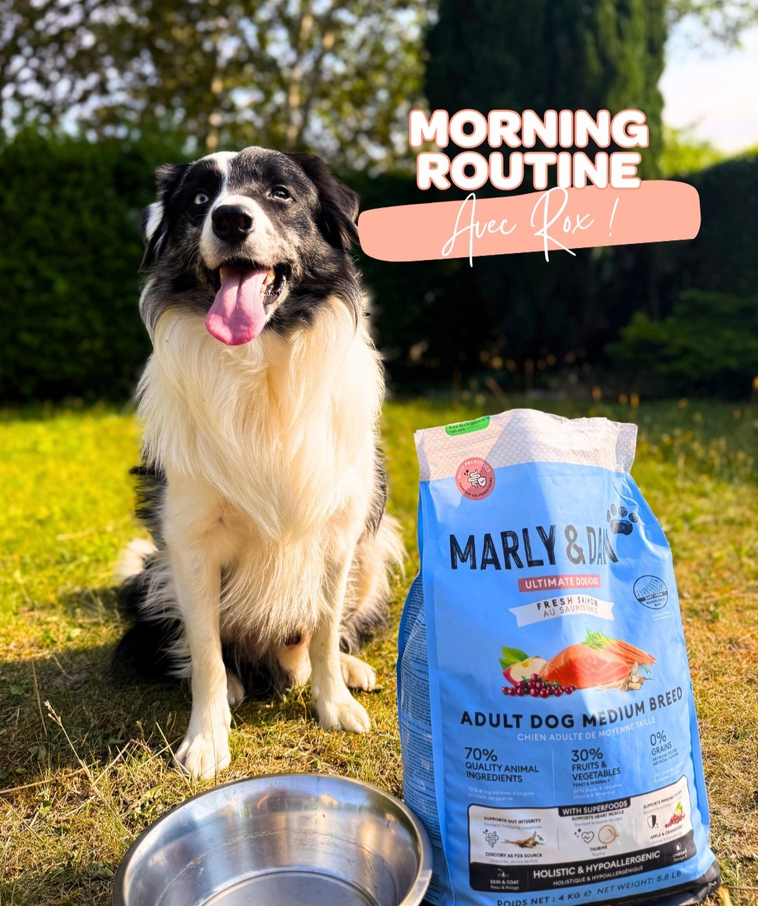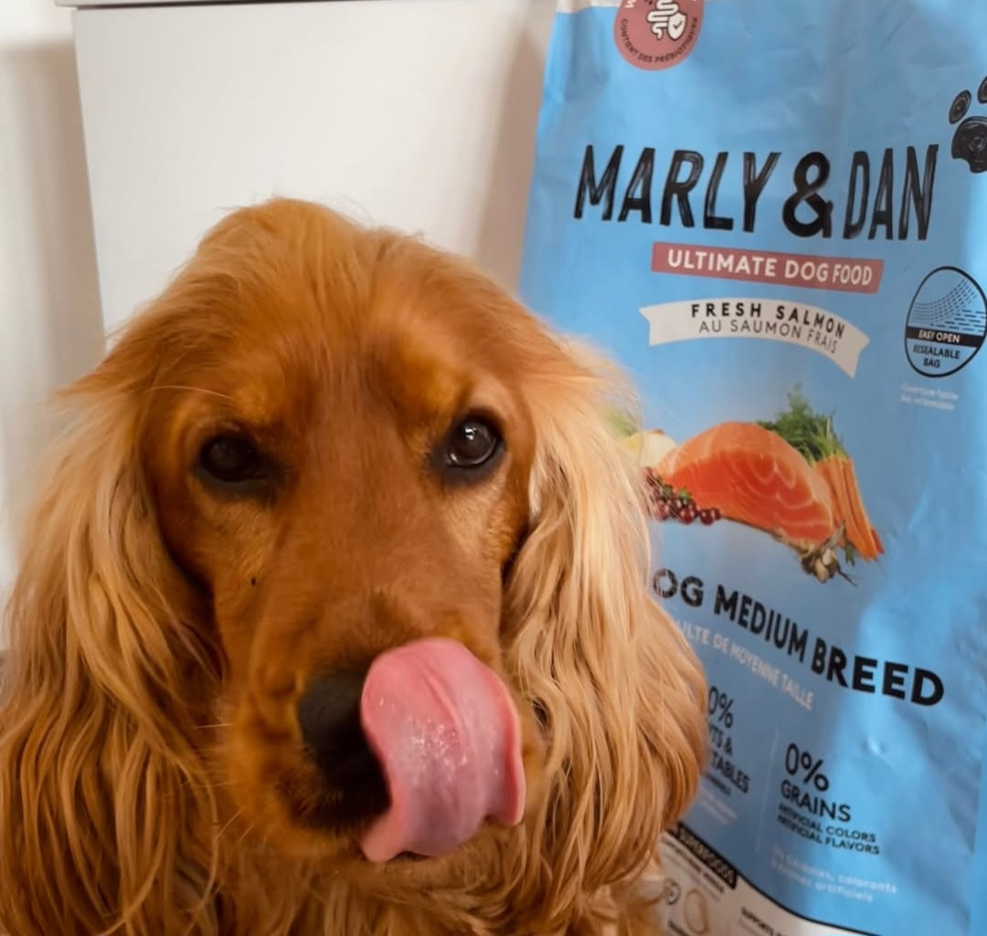 Ton (30%), somon proaspăt (26%), amidon de mazăre, grăsime animală (11%), cartofi, mazăre, pulpă de sfeclă, proteine hidrolizate din pește (3%), minerale, fibre vegetale, cicoare (sursă de FOS), morcovi (0,5%), roșii (0,5%), măr (0,5%), merișoare (0,1%), drojdie (sursă de MOS și beta-glucani), glucozamină (0,055%), sulfat de condroitină (0,045%), Yucca Schidigera (0,018%).