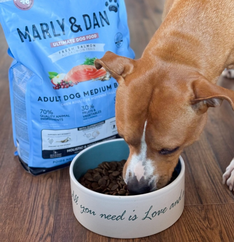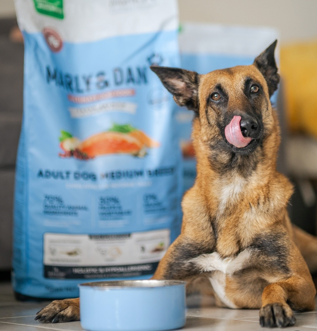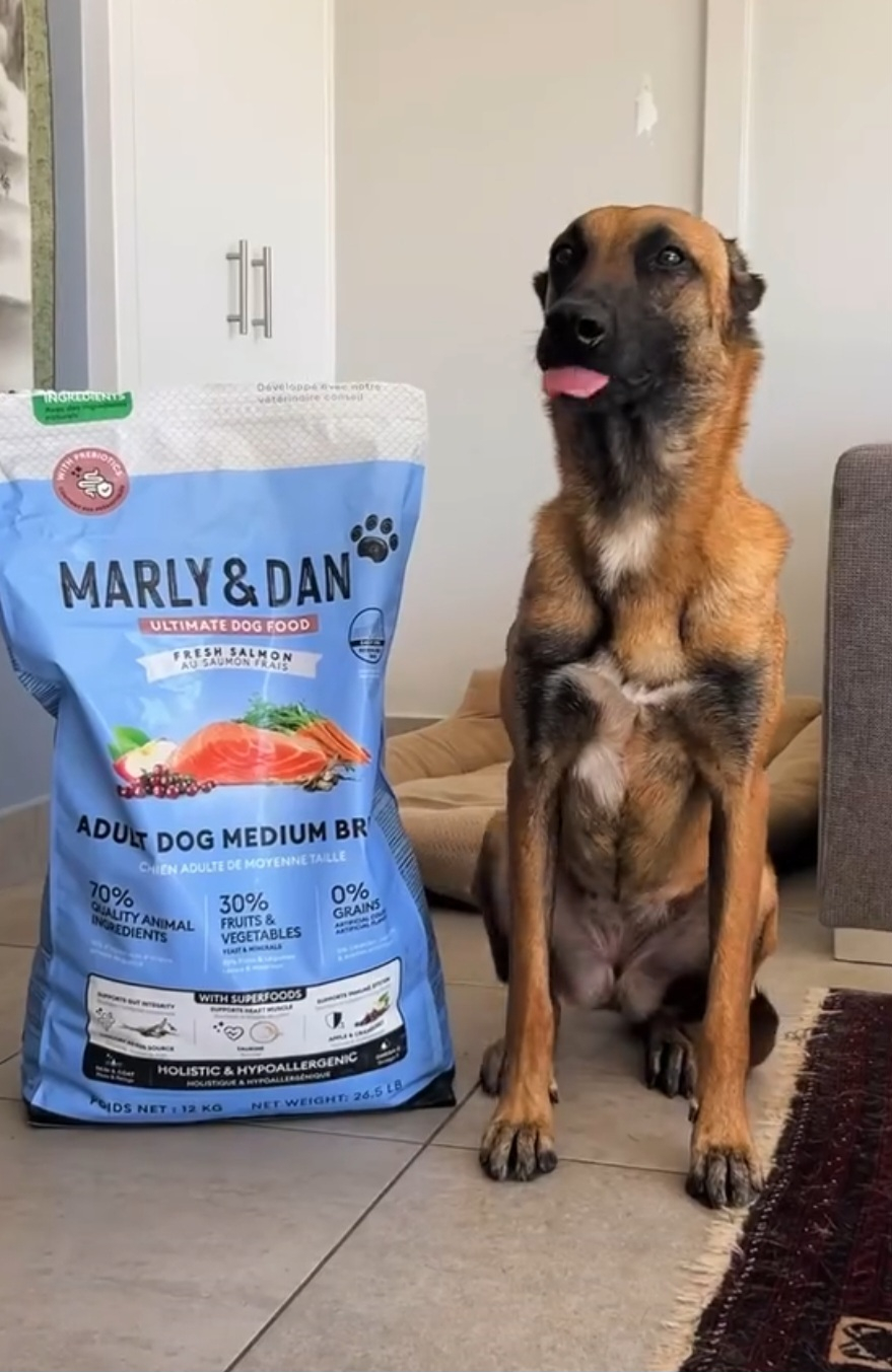 Ton (30%), somon proaspăt (26%), amidon de mazăre, grăsime animală (11%), cartofi, mazăre, pulpă de sfeclă, proteine hidrolizate din pește (3%), minerale, fibre vegetale, cicoare (sursă de FOS), morcovi (0,5%), roșii (0,5%), măr (0,5%), merișoare (0,1%), drojdie (sursă de MOS și beta-glucani), glucozamină (0,055%), sulfat de condroitină (0,045%), Yucca Schidigera (0,018%).