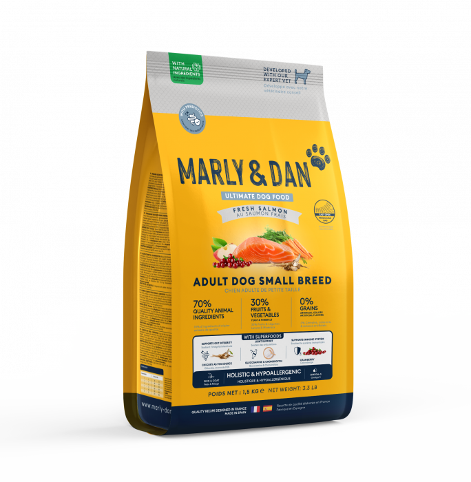 Marly&Dan oferă o gamă completă de hrană holistică ultrapremium pentru câini și pisici, dezvoltată de experți veterinari și nutriționiști. Produsele sunt formulate pentru a susține sănătatea optimă a animalelor de companie prin ingrediente naturale și beneficii funcționale dovedite. Utilizarea somonului proaspăt ca ingredient principal asigură un aport nutritiv superior, menținând starea de bine a animalelor.