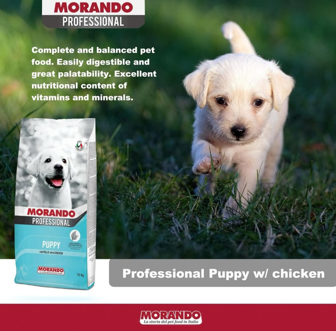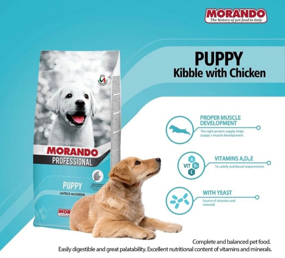 Hrană completă MORANDO pentru CĂȚELUȘI CU PUI, 15 kg