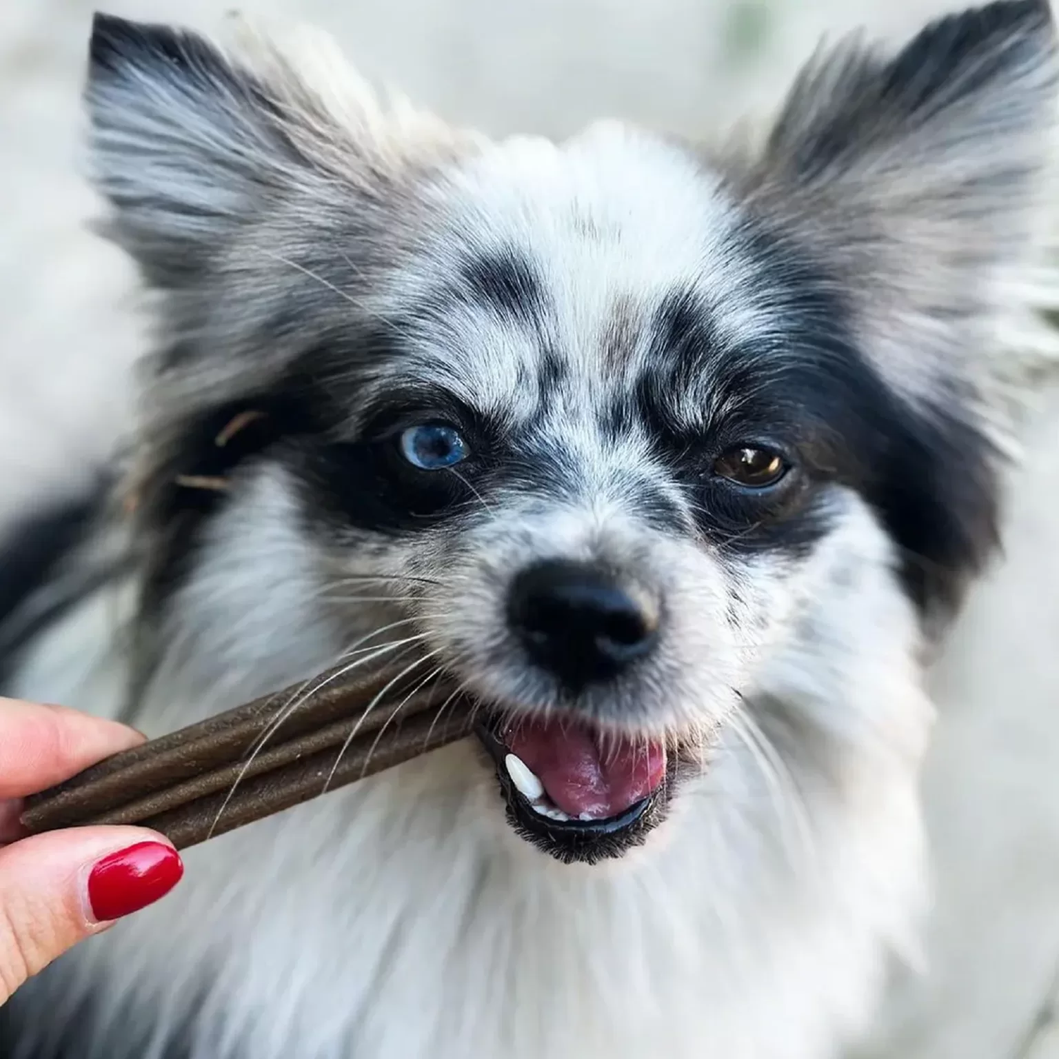 Dental Care Sticks sunt suplimentele care susțin sănătatea dentară și a gingiilor câinilor și ajută la curățarea dinților și la reducerea plăcii dentare. Îmbogățite cu mentă, ceai verde și pătrunjel, împrospătează respirația și sprijină sănătatea orală. Realizate din somon bogat în Omega-3, acestea nu doar că îmbunătățesc sănătatea orală, dar contribuie și la menținerea unei blăni strălucitoare și la susținerea articulațiilor. Formula naturală și fără conservanți este special creată pentru o sănătate generală optimă.