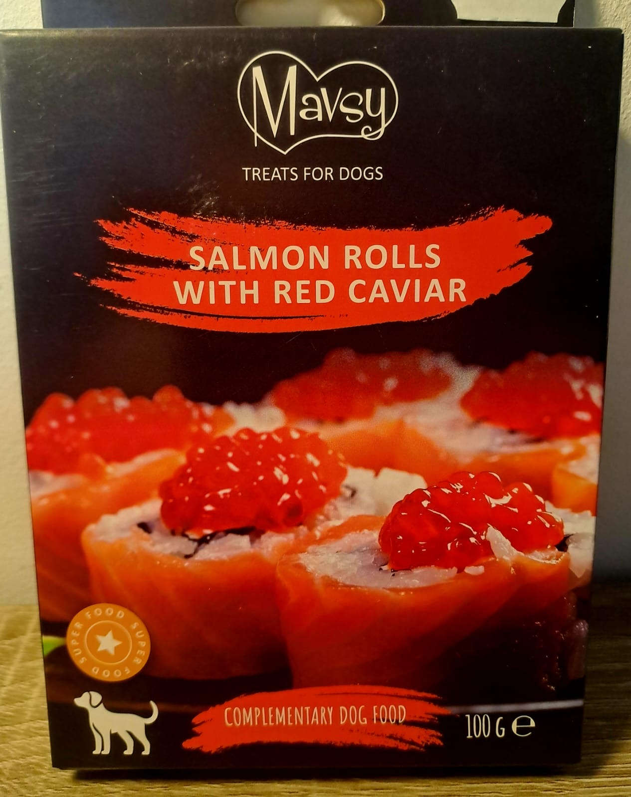 Deliciile Mavsy SALMON ROLLS CU ICRĂ ROȘIE sunt o gustare rafinată sub formă de Philadelphia cu somon și icre roșii, destinată câinilor de peste 3 luni. Acest produs unic nu doar că va încânta animalul dvs. de companie cu noi arome, dar îi va furniza și nutrienți importanți. Somonul și codul din compoziție conțin proteine de înaltă calitate, necesare pentru menținerea energiei și activității. Adăugarea de proteine vegetale, colagen și icre face ca aceste delicii să fie nu doar gustoase, ci și benefice pentru sănătate. Oferiți animalului dvs. de companie ocazia de a se bucura de această gustare rafinată, care combină savoarea și beneficiile în fiecare bucățică.